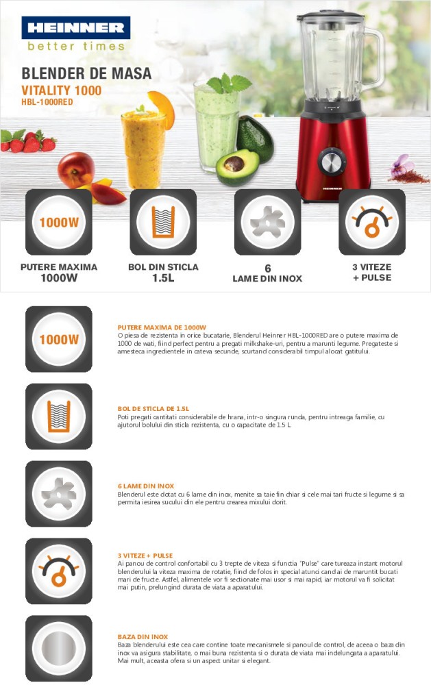 - Putere blender: 1000W