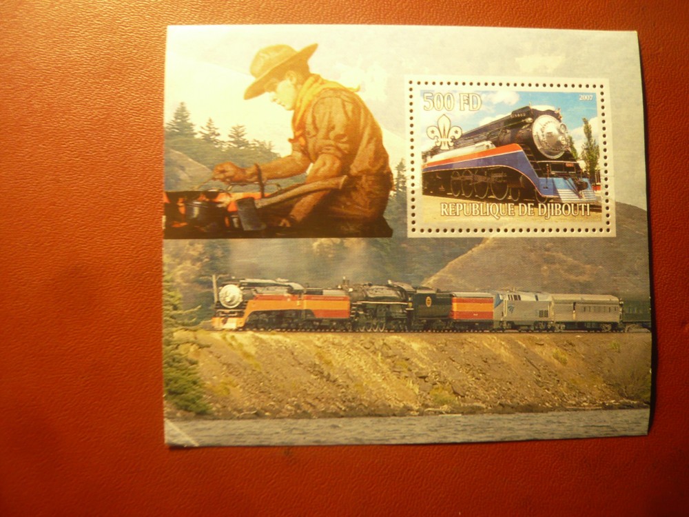 Bloc Djibouti Locomotiva , tren ,Cercetasi, pliu pe un colt