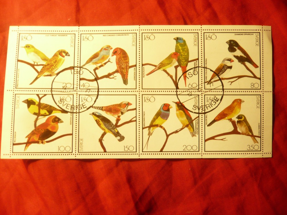 Bloc ISO Suedia 1977 - Pasari , 8 val. stampilate