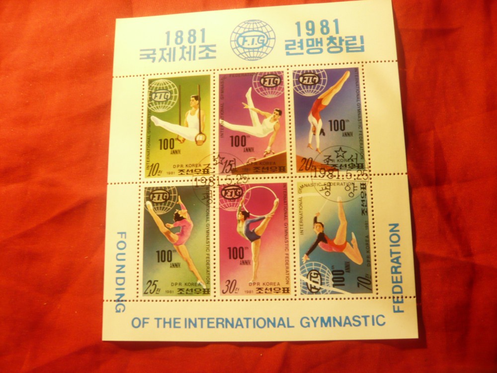 Bloc -Sport-100 Ani Fed. Internat. Gimnastica 1981 Coreea de Nord ,stampilat
