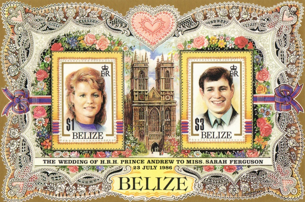 BLOC TIMBRE PRINCIPELE ANDREW SI SARAH BELIZE 1986