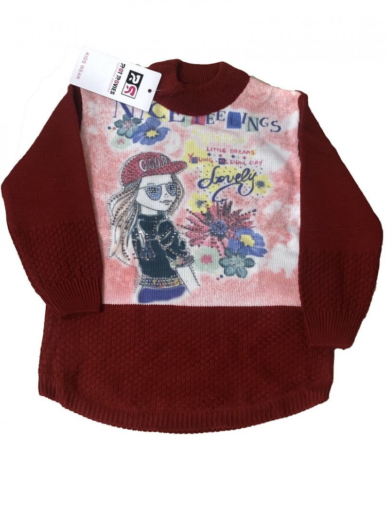Bluza fetita , culoarea grena , model cu maneca lunga
