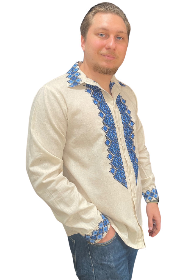 Bluza tip ie barbati RBN 24, marime L, bej antichizat/albastru