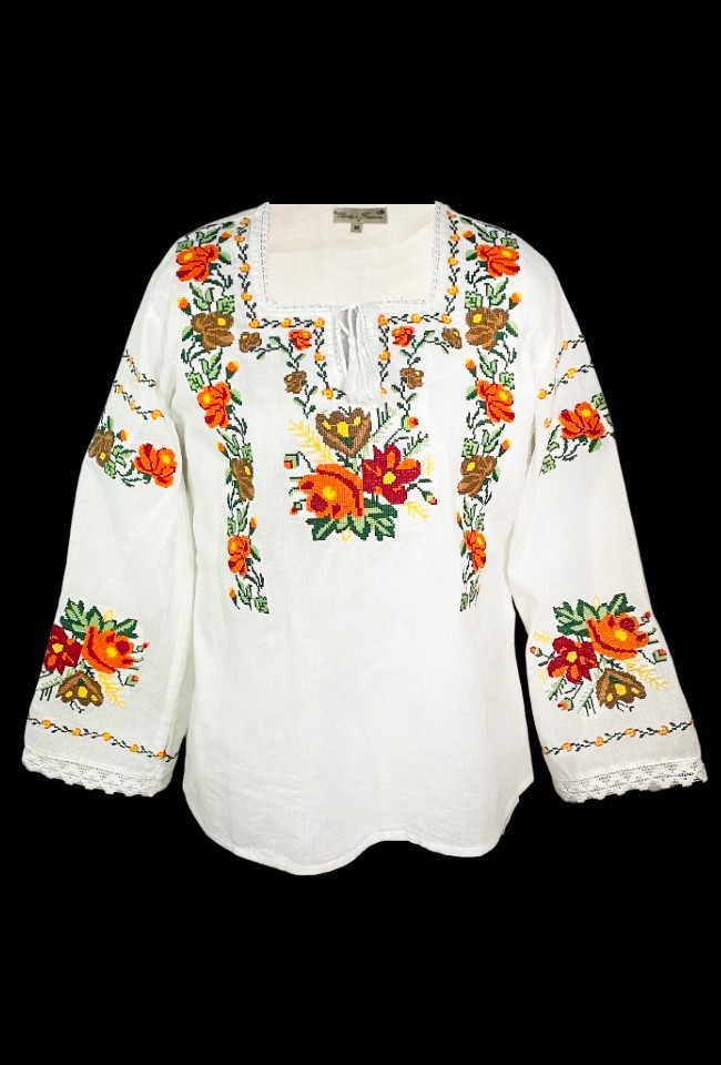 Bluza tip ie dama B23, alb/maro, marime 2XL