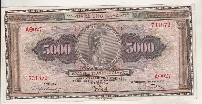 bnk bn Grecia 5000 drahme 1932 circulata P 103
