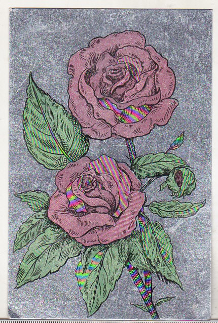 bnk cp Felicitare - Trandafiri - argintie - uzata