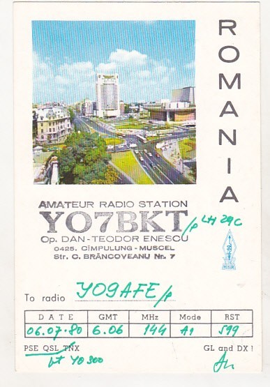bnk cp Romania CP QSL 1980 - Hotel Intercontinental