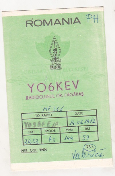 bnk cp Romania CP QSL 1982 - Bucuresti award