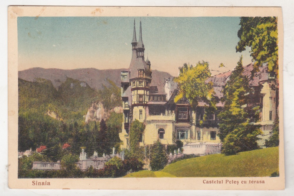 bnk cp Sinaia - Castelul Peles cu terasa - uzata 1937
