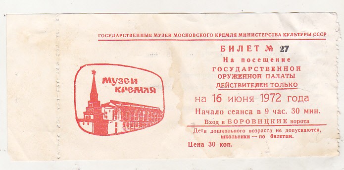 bnk div Bilet de intrare in Muzeul Kremlin - 1972