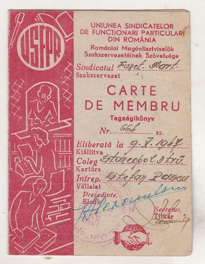 bnk div USFPR - carte de membru - 1947