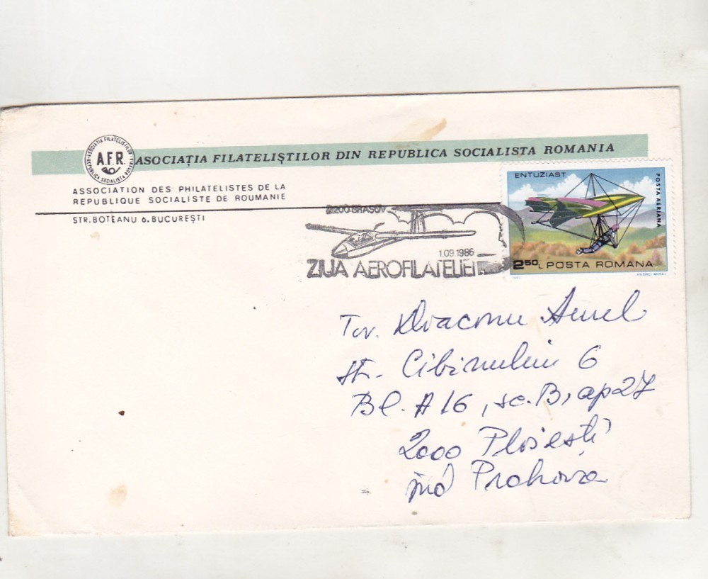 bnk fil Plic stampila ocazionala Ziua Aerofilateliei 1986