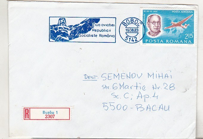 bnk fil Plic stampila ocazionala Ziua aviatiei 1983 Boboc - circulat recomandat