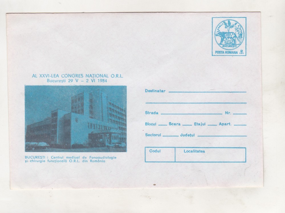 bnk ip Congresul XXVI ORL Bucuresti - necirculat - 1984