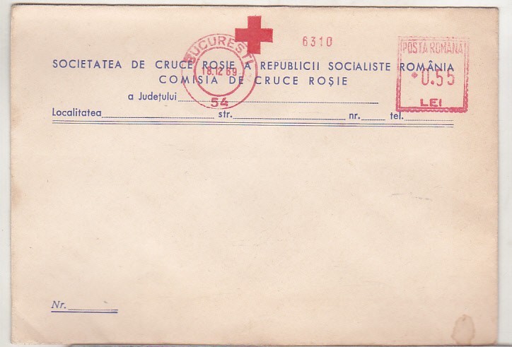 bnk ip Romania - plic Crucea rosie RSR cu francatura mecanica 1969