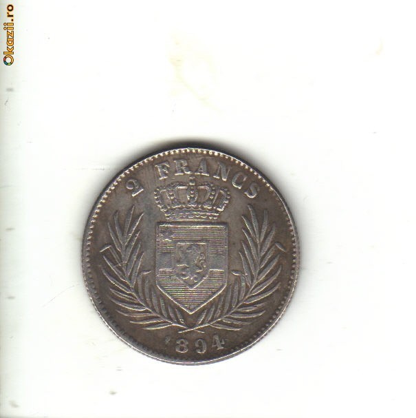 bnk mnd Congo belgian 2 franci 1894 REPLICA , cupru argintat