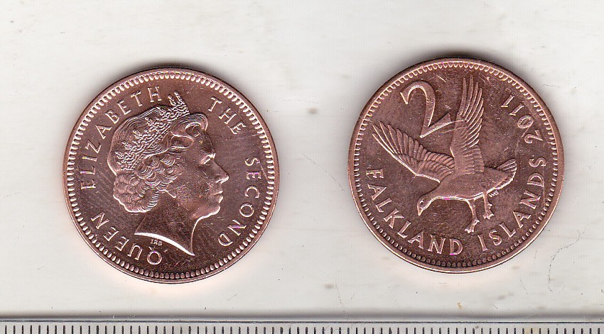 bnk mnd Insulele Falkland 2 penny 2011 unc , pasare