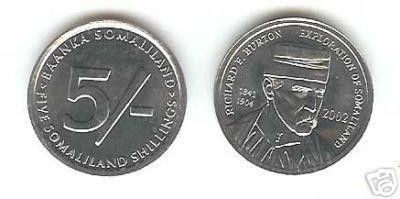 bnk mnd Somaliland 5 shillings 2002 unc , Richard Burton