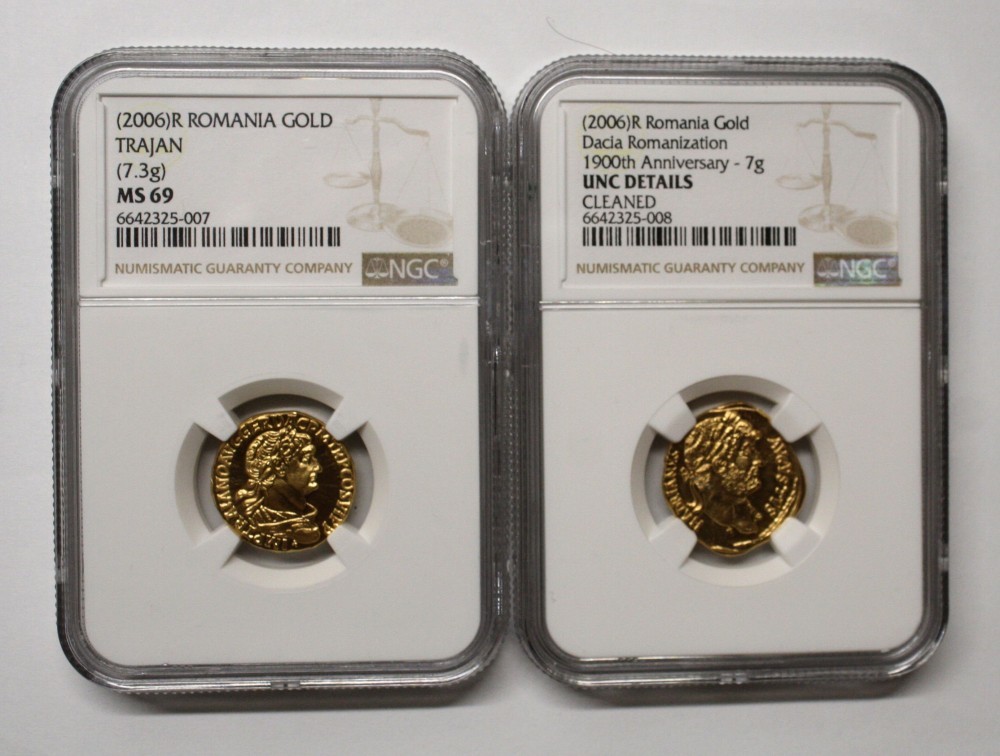 BNR 2006 - SET REPLICI DUPA MONEDE ROMANE . 3 MONEDE SUNT IN TOP POP, INCLUSIV UN MS70 UNIC .