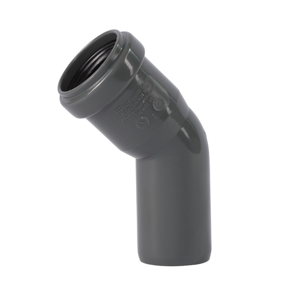 Ein Mindestgefälle von 2 cm pro Meter ist vorgeschrieben. HT-Abzweige und andere Formteile sind daher mit einem maximalen Winkel von 87 Grad (3 Grad Gefälle) zum Hauptrohr ausgestattet.