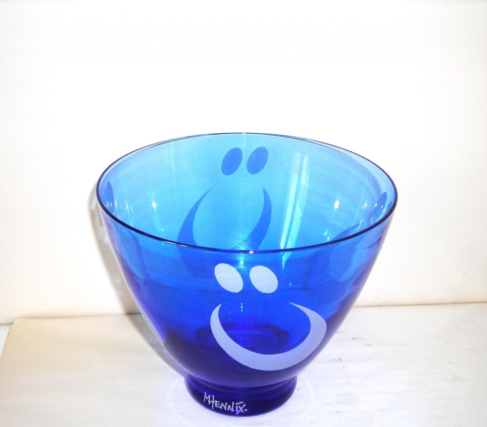 Bol cristal saphire suflat manual - semnat Margareta Hennix, Reijmyre Suedia