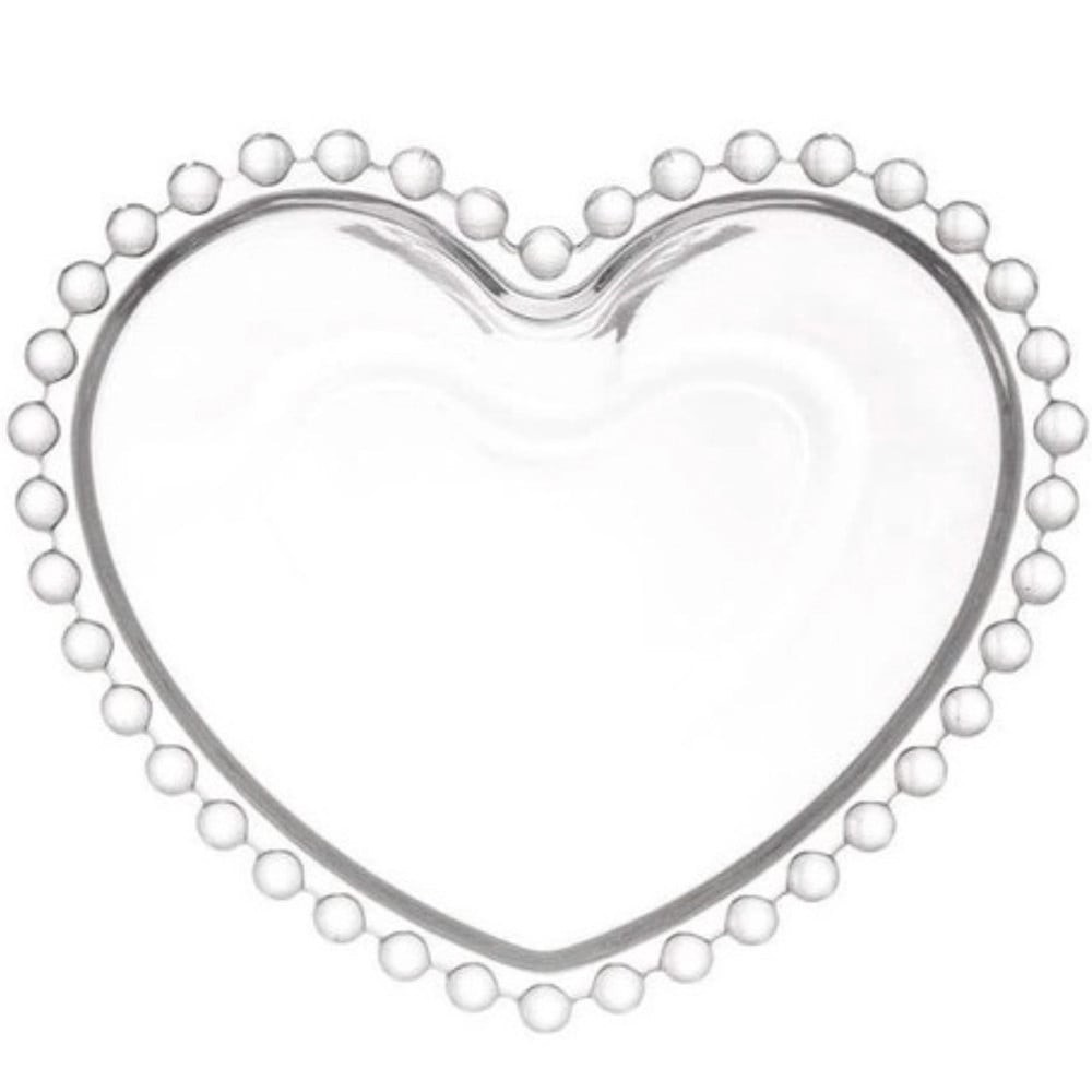 Bol de sticla elegant in forma de inima Pufo Heart pentru servire alune, fistic, bomboane, gustari, 22 cm