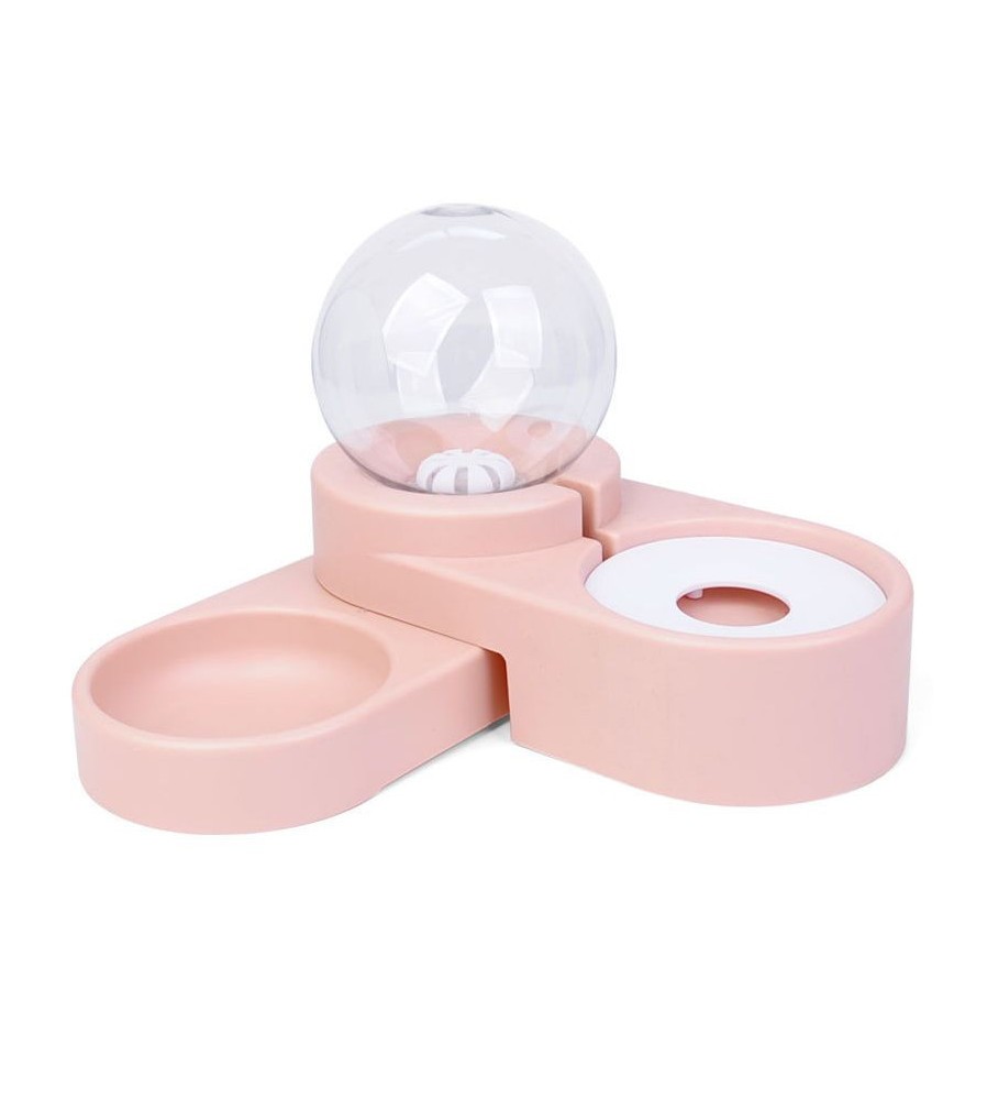 Bol dublu cu dozator de apa pentru pisici sau caini, roz