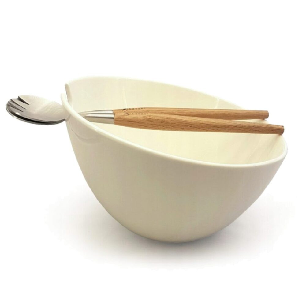 Bol pentru salata cu ustensile alb si lemn, Kassel