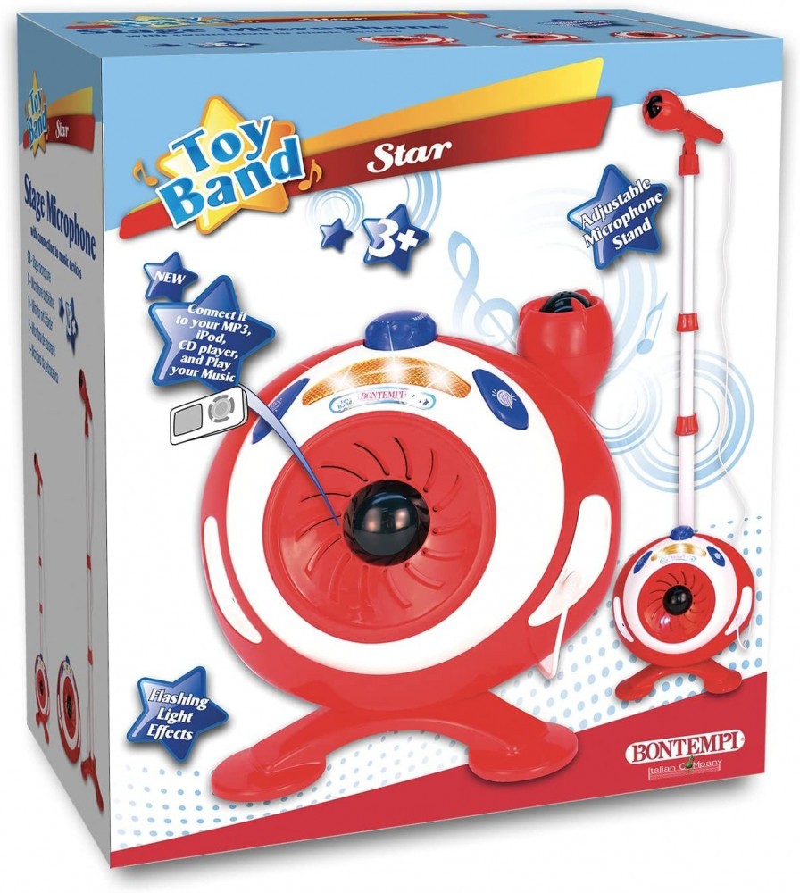 Microfonul reglabil cu stativ si conectat la amplificator permite copiilor sa isi exerseze talentele de muzicieni si sa pregateasca adevarate spectacole. Jucaria este confectionata din material plastic rezistent, colorat si cu design compact. Efecte luminoase si sonore. Posibilitate conectare la MP3, smartphone sau alte device-uri. Beneficii: familiarizarea cu muzica si ritmul, dezvoltarea abilitatilor sociale si cognitive, coordonarea miscarilor, atentia distributiva.Produsul necesita 4 baterii LR 14/ C 1,5V (nu sunt incluse). Dimensiuni jucarie:40x19x63 cm.