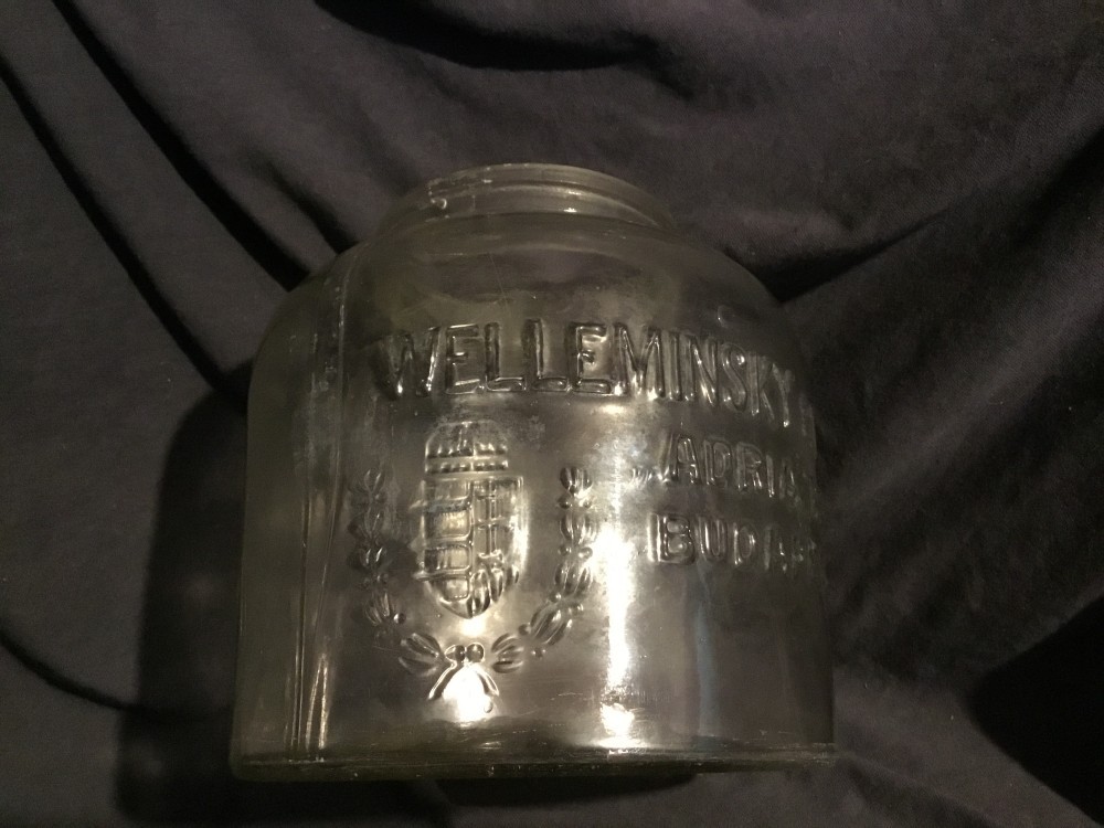 Borcan de epoca inceputul sec XX cu scris in relief Welleminsky & Gottlieb Adria R-T Budapest !