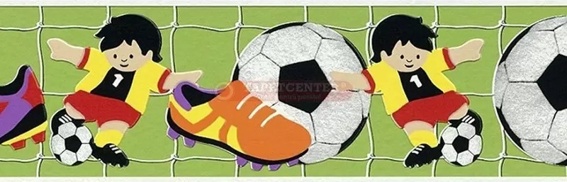 Bordura decorativa din spuma vinilica, model cu fotbal, dimensiune: 5ml x 18cm, pe suport de hartie, ideala pentru incadramente sau delimitari pentru pereti. La acest model de bordura este nevoie de un adeziv pentru bordura sau de un adeziv special (pentru suport de hartie) cu care se va da si pe perete si pe tapet la montaj.Inaintea montajului indicam amorsarea peretilor cu amorsa acrilica pentru o lipire uniforma si de lunga durata.