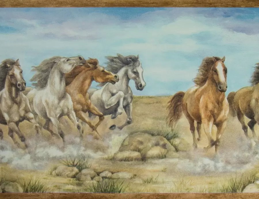 Bordura de copii cu cai, hartie, semilavabil, pe suport de hartie. Dimensiune: 25cm x 5m. La acest model de bordura este nevoie de un adeziv pentru bordura sau de un adeziv special (pentru suport de hartie) care se va aplica si pe perete si pe bordura la montaj.Pentru pregatirea suprafetei este necesara amorsarea peretilor cu amorsa acrilica pentru o lipire uniforma si de lunga durata.