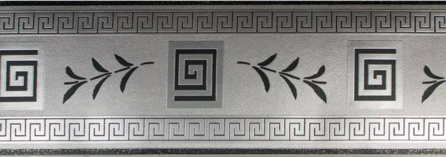 Bordura Versace, negru cu argintiu, hartie, semilavabil, pe suport de hartie. Dimensiune: 13cm x 10m. La acest model de bordura este nevoie de un adeziv pentru bordura sau de un adeziv special (pentru suport de hartie) care se va aplica si pe perete si pe bordura la montaj.Pentru pregatirea suprafetei este necesara amorsarea peretilor cu amorsa acrilica pentru o lipire uniforma si de lunga durata.