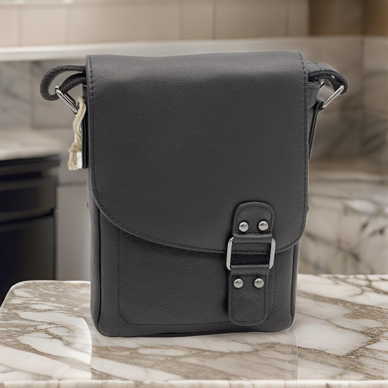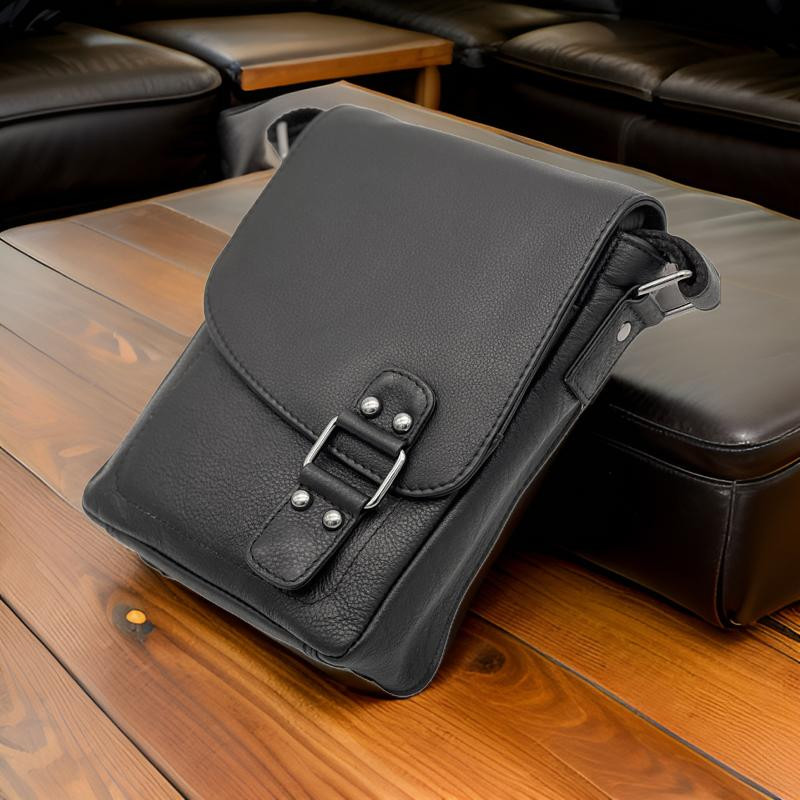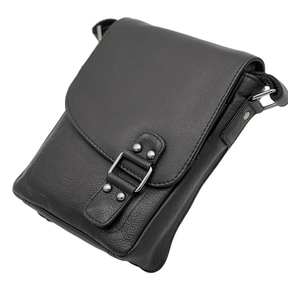 Borseta Neagra Barbati din Piele Nappa, Curea de Umar din Piele, Brand Hunter, 18x20x5 cm