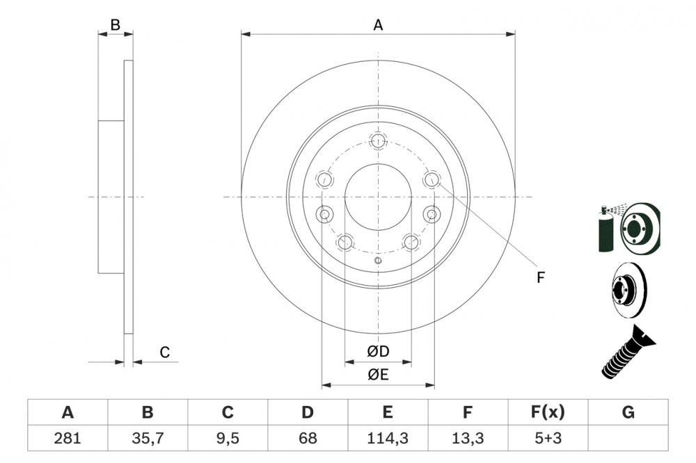 Disc frana (BOSCH 0 986 479 E55). Compatibil cu: MAZDA CX-3. Motorizari 2.0 benzina; 1.5 diesel; ani fabricatie 2015-2018.