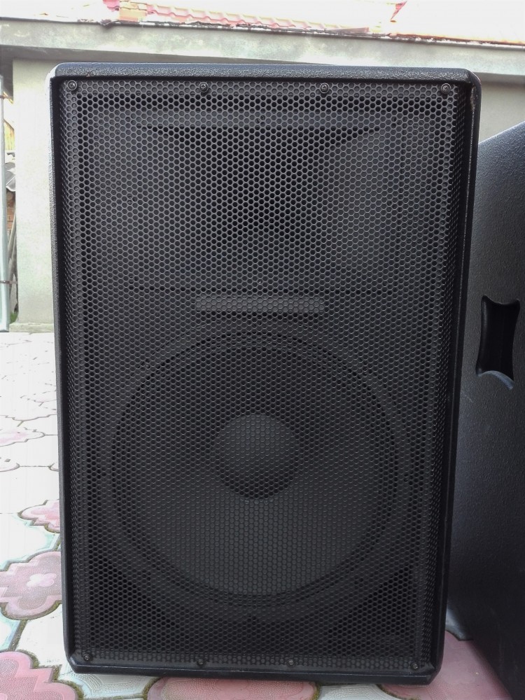 Boxele sunt foarte ingrijite, nu sunt rebobinate si nu sa umblat deloc in ele. Se vand cu huse protectie care au fost puse pe ele inca din prima zi. Prefer vanzarea doar dupa o verificare la fata locului dar, trimit si in tara cu verificare colet cu plata la destinatar.. Rog si ofer seriozitate. pret/ sistem 2000 lei Diametru difuzor joase (inch): 15 Material: lemn Putere garantata (W): 400 Raspuns in frecventa (Hz): 45-20000 Sensibilitate (dB): 93 Impedanta (Ohm): 8 Dimensiune (mm): 725x480x400 Greutate (kg): 26