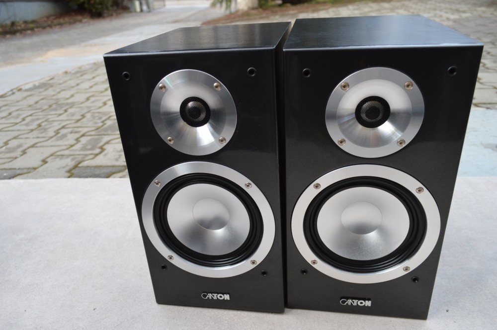 Boxe Canton Chrono 502: 2 cai, bass reflex, bass 17 cm, suspensie cauciuc, difuzor aluminiu, 4-8 ohmi, made in Germany, plase protectie, H 36, L 19, A 28 cm.