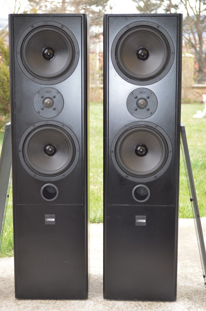 Boxe Canton Fonum 601: pe 3 cai, bass 2x18cm, suspensii bass cauciuc, impedanta 4-8 ohmi, putere 100w/150w, frecventa de raspuns 25-26000Hz, culoarea neagra, suna foarte bine, dimensiuni H=90cm, L=23.5cm, A=27cm, made in Germany, nezgariate.