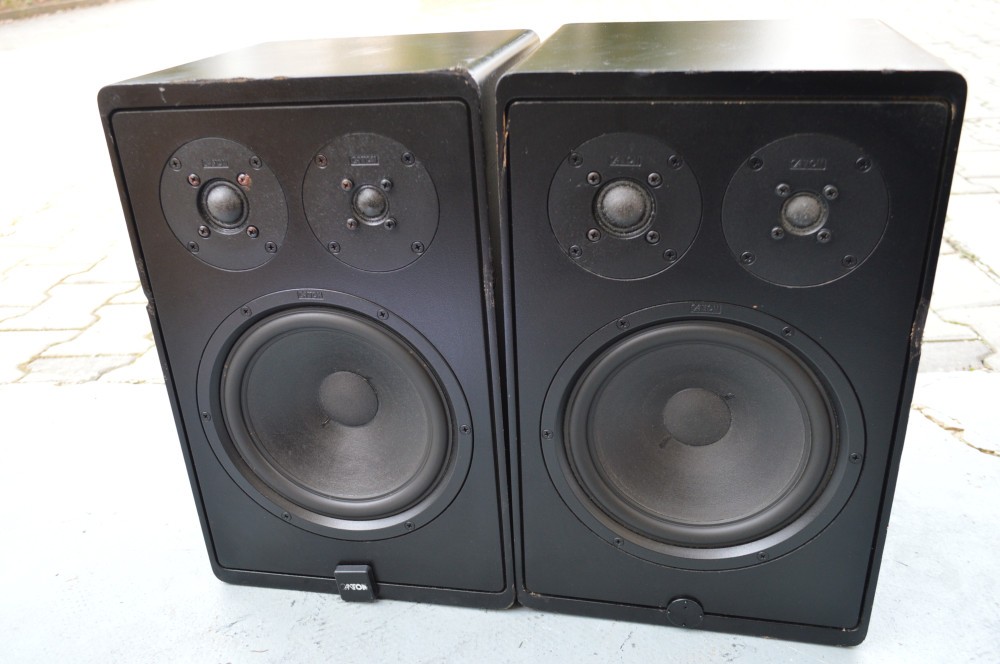 Boxe Canton Karat 200, bass compresie, diametru difuzor bass 22 cm, suspensie din cauciuc, plase de protectie metalice, lipsa o sigla de pe o boxa, negre, impedanta 8 ohmi, putere 70/100 W, frecventa de raspuns 28-30000 Hz, made in W Germany, prezinta zgarieturi, inaltime 42 cm, latime 26,5 cm, adancime 24,5 cm.