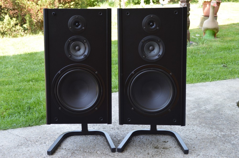 Boxe Grundig Box 5700, negre, arata foarte bine, 3 cai, bass pe compresie, putere 60/100W, impedanta 4 ohmi, frecventa de raspuns 35-22 000 Hz, made in Germany, difuzoare originale, plase protectie, diametru difuzor bass 20 cm, incinta: h48/27,5/a30 cm, dotate cu suporti. H cu suport = 60 cm.