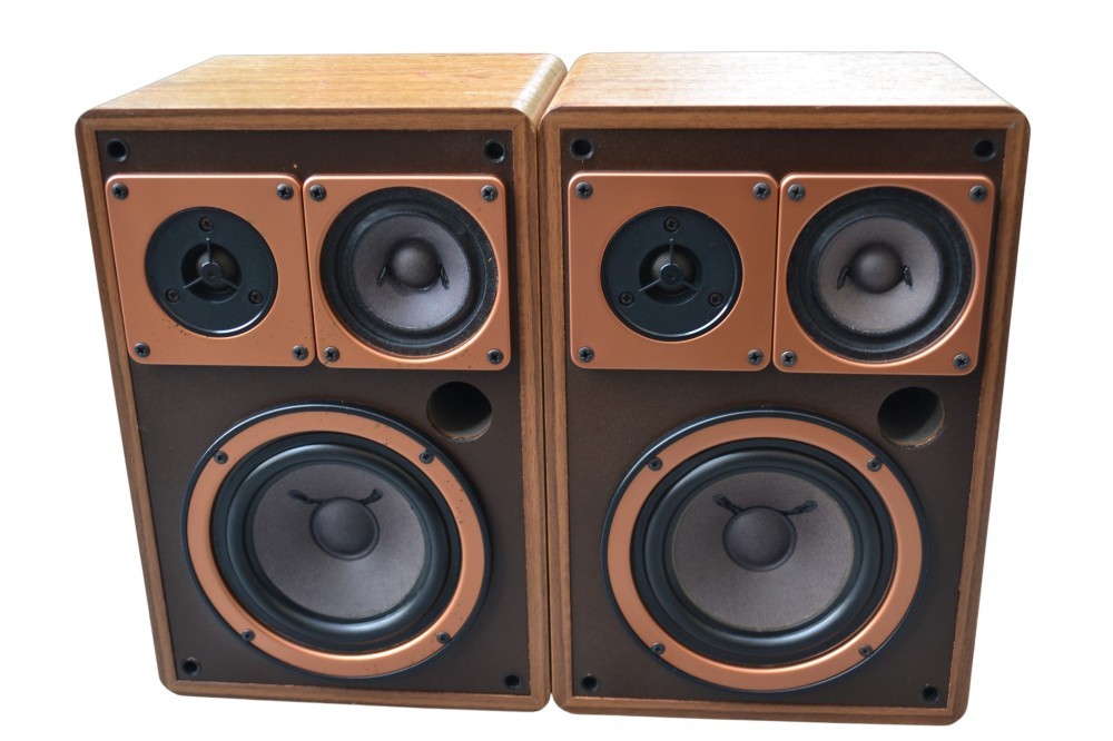 Magnat Interfunk MG 12: pe 3 cai, bass tip reflex, diametru bass de 17 cm, suspensii cauciuc, culoare maro, plase de protectie, impedanta 4 ohmi, frecventa de raspuns 36-22000 Hz, made in West Germany, dimensiuni H=38cm, L=25cm, A=22cm.
