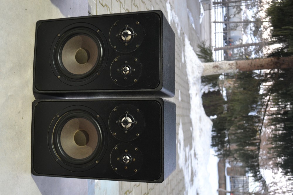Boxe MC Brown model 344: 3 cai, compresie, bass 22 cm, suspensie cauciuc, negre, plase protectie metalice, 8 ohmi, 100/150W, 20 Hz-25 000 Hz, made in Germany, H 49, L 28, A 27 cm, poze reale.