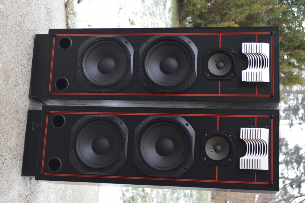 Boxe Universum CD 300: pe 3 cai, 4 difuzoare, bass tip reflex, diametru bass de 2x20 cm, suspensie din cauciuc, au plasele de protectie, impedanta 8 ohmi, putere 150W/300W, arata si functioneaza OK, made in Germany. Dimensiuni: inaltime:93 cm, latime 28 cm, adancime 25 cm.
