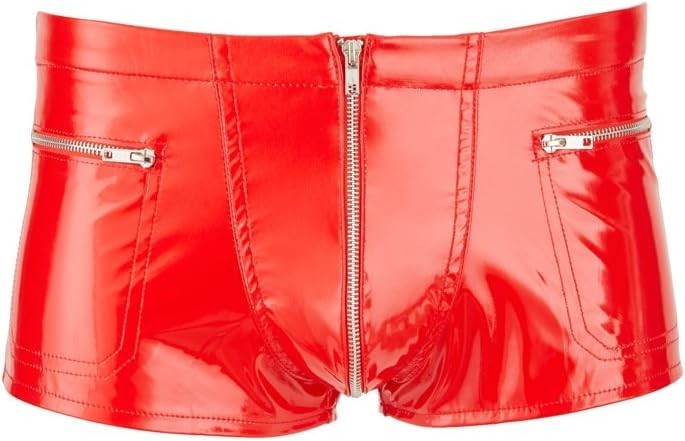 Chiloti boxeri Rosii din latex pentru barbati, cu buzunare si fermoare. Chiloti Boxeri Rosii pentru barbati care vor sa fie sexi. Nu doar culoarea rosie atrage privirile ci si faptul ca sunt mulati si luciosi cu 2 mici buzunare cu fermoar. Material stretch 100% poliester acoperit cu poliuretan (latex look) Fă-ți fundul extrem de atrăgătorFermoar căptușit peste geantă și două buzunare cu fermoareminunat de scurt și strâmt, și îți pune în valoare și fesele într-un mod sexyMaterial: 100% poliester, strat de acoperire: poliuretan Ceva strălucitor pentru fund. Acești pantaloni sunt confecționați din vinil roșu strălucitor și îți scot în evidență fundul. Există un fermoar căptușit peste marsupiu și două buzunare cu fermoar în interior. Pantalonii sunt minunat de scurți și strâmți și îți scot în evidență fesele într-un mod sexy. Material: 100% poliester cu înveliș din PU. Pantaloni roșii din vinil pentru el. Culoare deosebită! Nu numai culoarea atrage atenția, dar și croiala strâmtă este pur și simplu sexy! Pantaloni roșii cu fermoar căptușit la buzunar și două buzunare mici cu fermoare. 100% poliester cu înveliș poliuretanic.