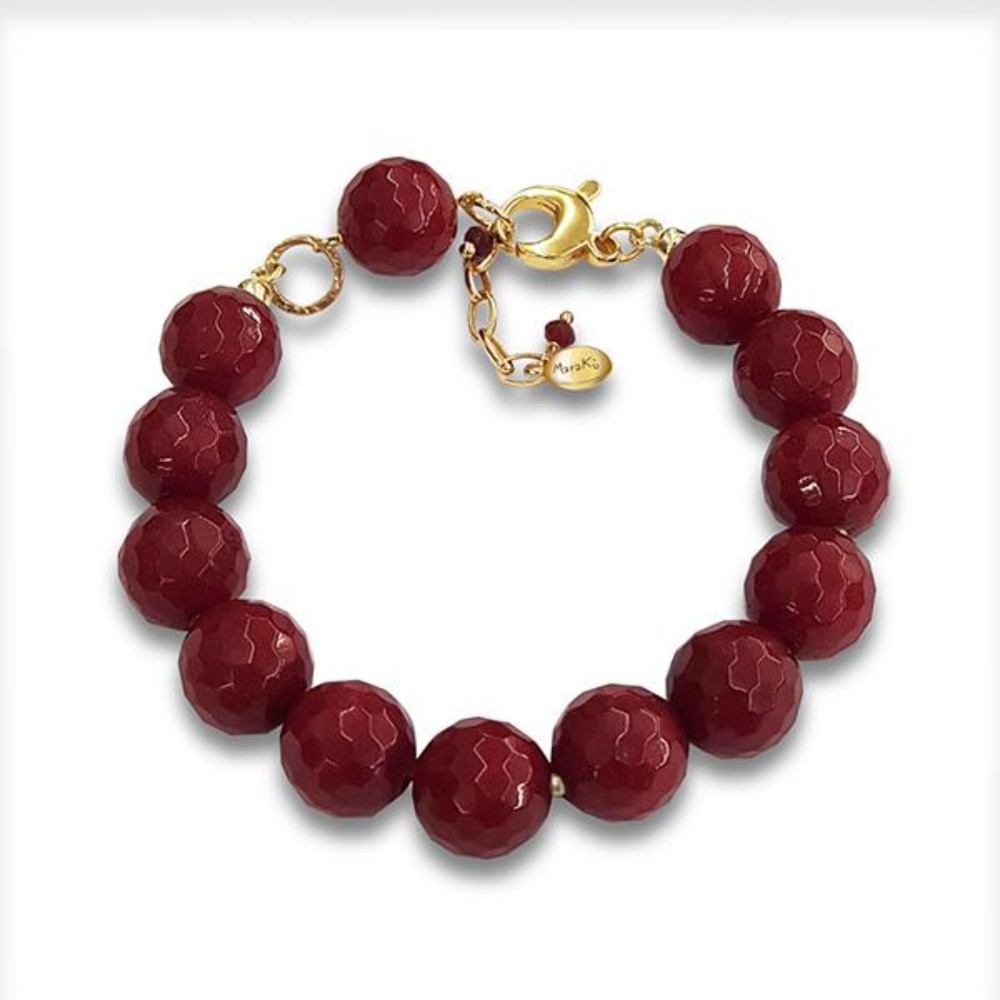 Brățară Harmony din agat rubiniu, cu sfere de 12 mm. Lungime: 17 – 23 cm, reglabilă. Se poate compune set cu: Colier Harmony și Cercei Harmony. Detalii produs: Argint 925/°°° placat cu aur galben, cu tratament antioxidant unic. Certificat de garanție a materialului. Cutie și pungă cadou incluse. Fiecare bijuterie este realizată manual, cu precizia inconfundabilă Made in Italy. Notă: Culorile pietrelor semiprețioase pot diferi în funcție de reflexia luminii.