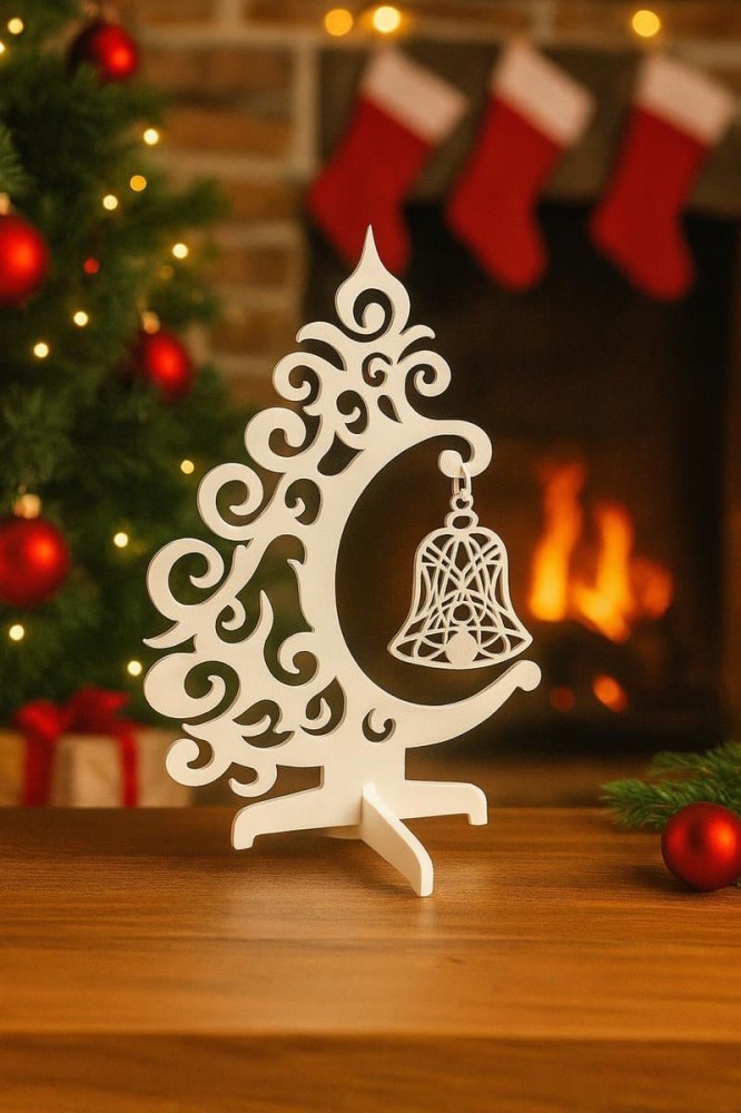 Brad cu clopotel Decoratiune de Craciun brad cu clopotel- decoratiune de masa Bradul este simbolul central al Craciunului – viata, speranta, protectie si familie. Simbolizeaza bucuria oferirii, unitatea familiei si veselia sarbatorilor. Este o piesa care aduce un aer festiv si pozitiv oricarui spatiu. Decoratiune de masa premium tip bradut cu clopotel, realizata din acril alb premium, decupata cu laser de inalta precizie pentru un aspect impecabil si detalii perfect conturate. Designul elegant si rafinat transforma aceasta decoratiune intr-un element deosebit pentru masa festiva de Craciun, birou sau spatii comerciale exclusiviste. Finisajul neted si materialul durabil ofera un plus de valoare si rezistenta in timp. Bradutul decorativ premium cu clopotel este ideal pentru decoruri sofisticate, cadouri elegante si amenajari festive cu stil modern. Utilizare: Exclusiv pentru interior Fabricat in Romania Produs realizat cu laser: fiecare decoratiune este unica Design festiv perfect pentru Craciun Fabricat din materiale eco, prietenoase cu mediul Usor de integrat in orice decor interior Perfect pentru cadouri si colectii tematice Stabil, dar usor – nu necesita montaj sau sustinere suplimentara Aceasta piesa este o decoratiune artistica cu scop decorativ. Nu are functionalitate mecanica sau religioasa. Este realizata manual, pot exista mici variatii intre produse. Alegerea perfecta pentru cei care apreciaza arta, simbolismul si produsele eco!