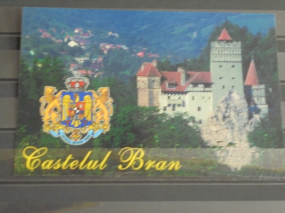 BRAN - Castelul voievodului VLAD TEPES " DRACULA ", vedere dinspre nord- est, Stema regala a Romaniei - pe verso reproducere dupa o veche pictura -
