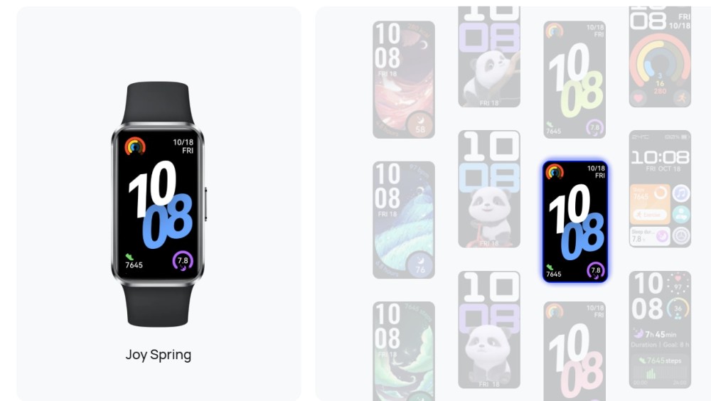Transforma-ti bratara intr-un ceas atemporal cu fetele de ceas Huahua the Panda, Starry Vista, Joy Spring, Super Watch, Gallery sau Style cu tematica emotionala. Du-ti moda de la incheietura mainii la nivelul urmator cu stiluri, caracteristici si Always on Display (AOD) personalizabile, pentru ca fiecare design sa fie unicul tau.