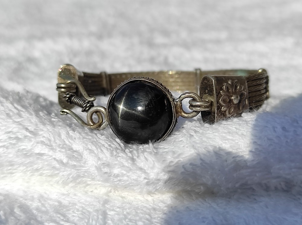 BRATARA argint ETNICA TRIBALA RAJASTHAN INDIA cu ONIX lata MASIVA rara VECHE
