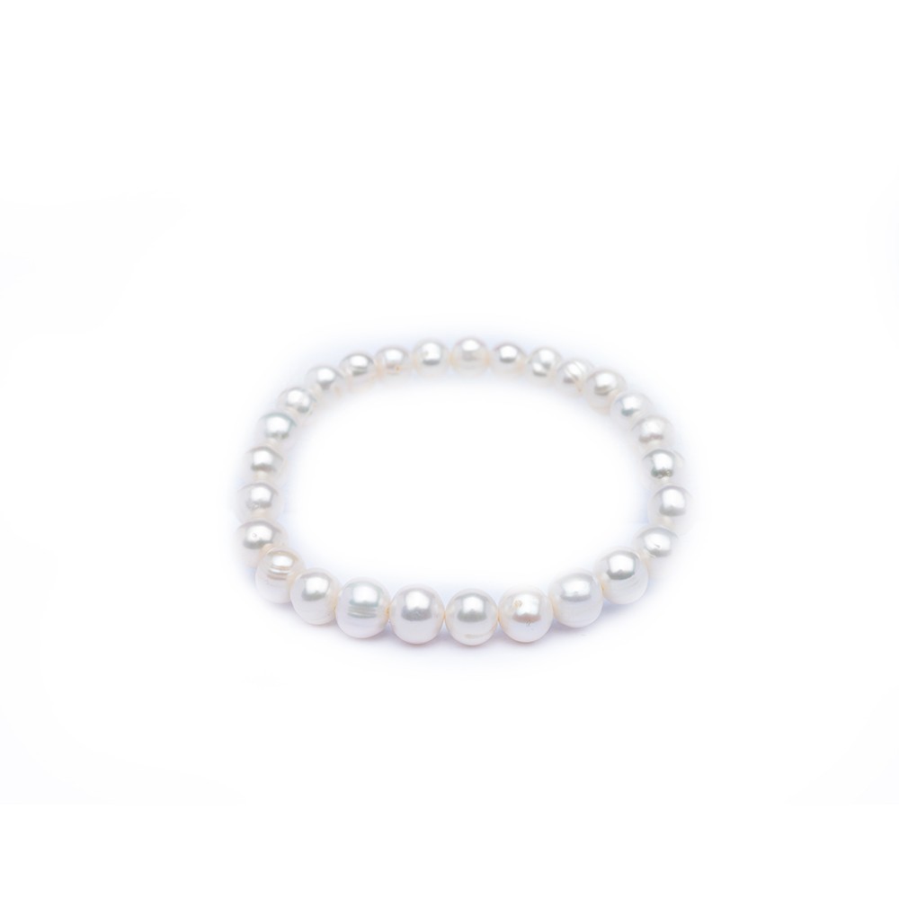 Bratara este din perlute, iar acestea sunt insiruite pe elastic.
